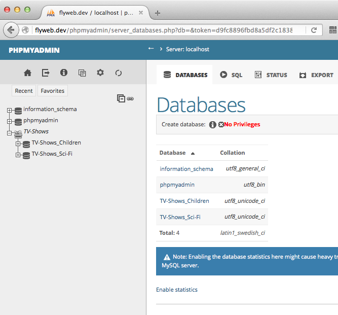 How to easily keep a tidy overview of databases in phpMyAdmin